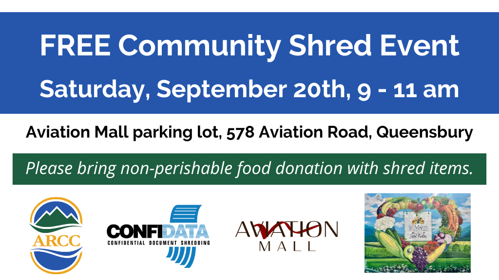 The ARCC, alongside Confidata and the Aviation Mall, will be hosting the Annual Community Shred Day and Food Drive to securely shred documents and support St. Mary’s Food Pantry in Queensbury, NY this September.