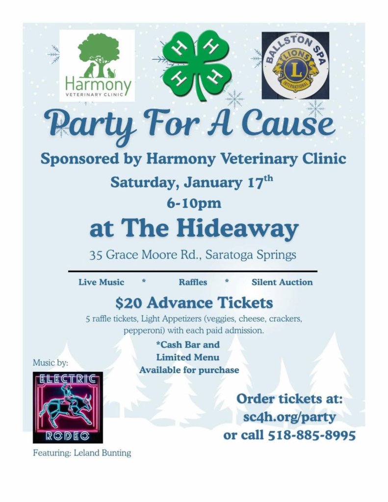 SARATOGA SPRINGS – We are feverishly working on our Winter’s Edge Party for a Cause fundraiser. Many thanks to Harmony Veterinary Center for being our signature sponsor. This fun event will be held on January 17th at The Hideaway at Saratoga Lake Golf Course from 6-10pm.