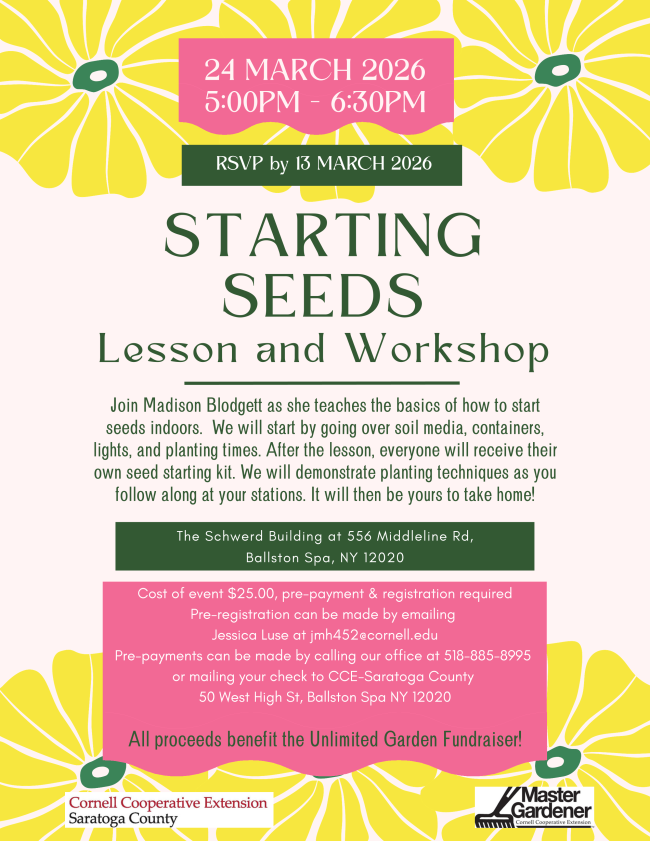 Pre-payments can be made by calling our office at 518-885-8995 or mailing your check to CCE-Saratoga County, 50 West High St, Ballston Spa NY 12020